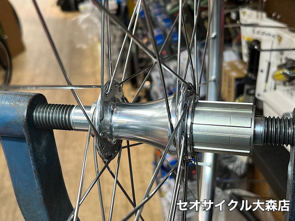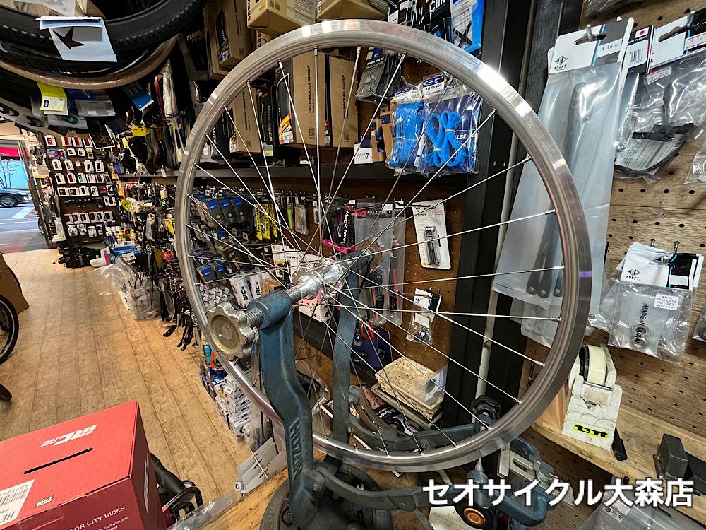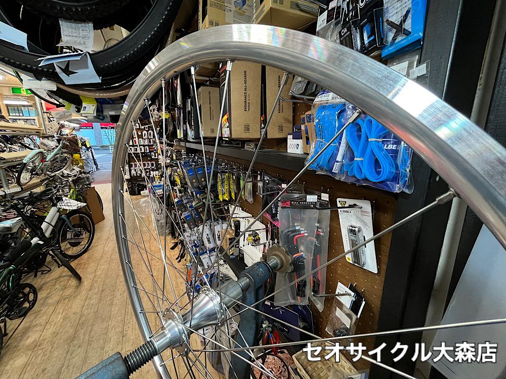 昔のロードバイクに最適なシルバーポリッシュホイール。フルメンテナンスや組み換えも承りますのでご相談くださいませ。