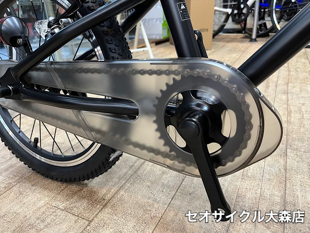 チェーンは裾がからまないように、だけどカッコ悪くならないようにスモーク仕様のチェーンカバーでガード。