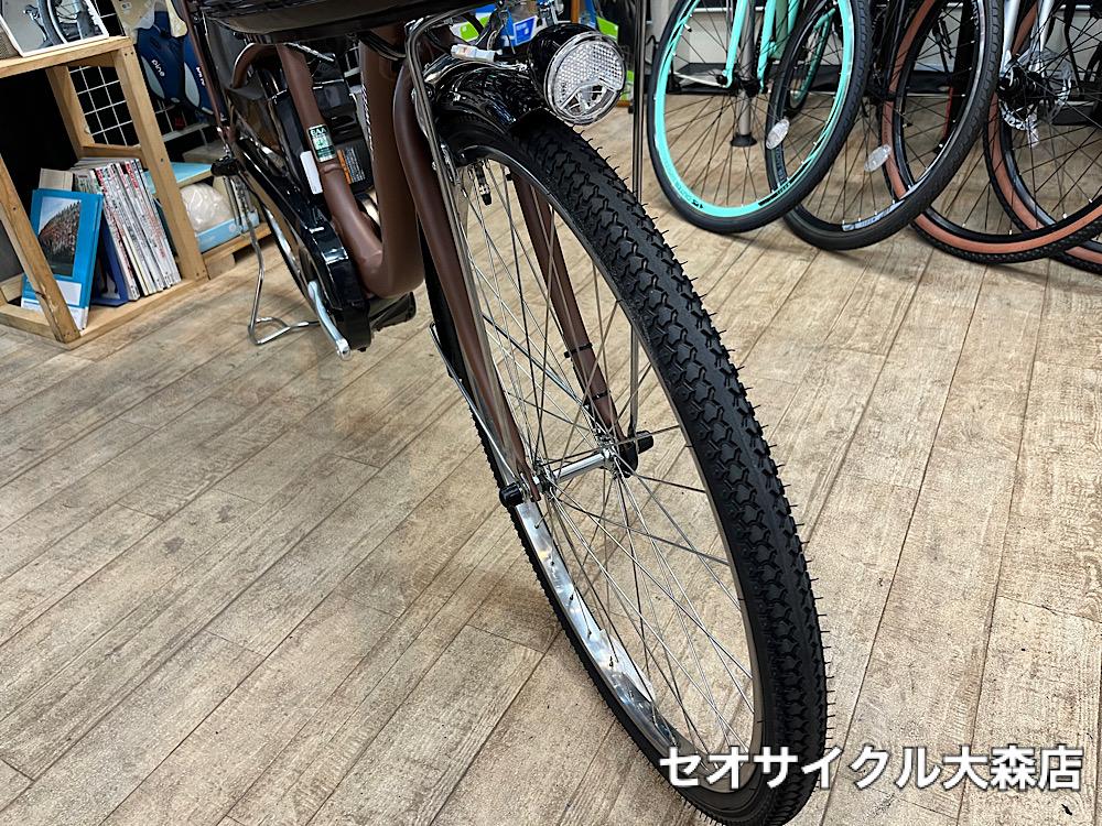 丈夫で錆に強いステンレスリム・ステンレススポークの頑丈ホイールに太めサイズの26インチタイヤを装備。