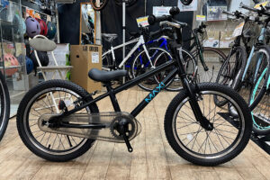 アルミを使った軽ーーーいキッズ用BMX 18インチ。 太めのブロックタイヤにブレーキはしっかり止まるVブレーキ仕様。 チェーンは裾がからまないように、だけどカッコ悪くならないようにスモーク仕様のチェーンカバーでガード。 …