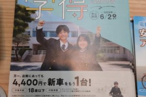 こんにちは! 今回はちょっぴりお買い得?情報です。 6月中に対象車種をご成約頂き、ご応募していただくとメーカーから5,000円キャッシュバックというものです。 お得なこの時期に是非快適な電動アシスト付き自転車を! ※なお …